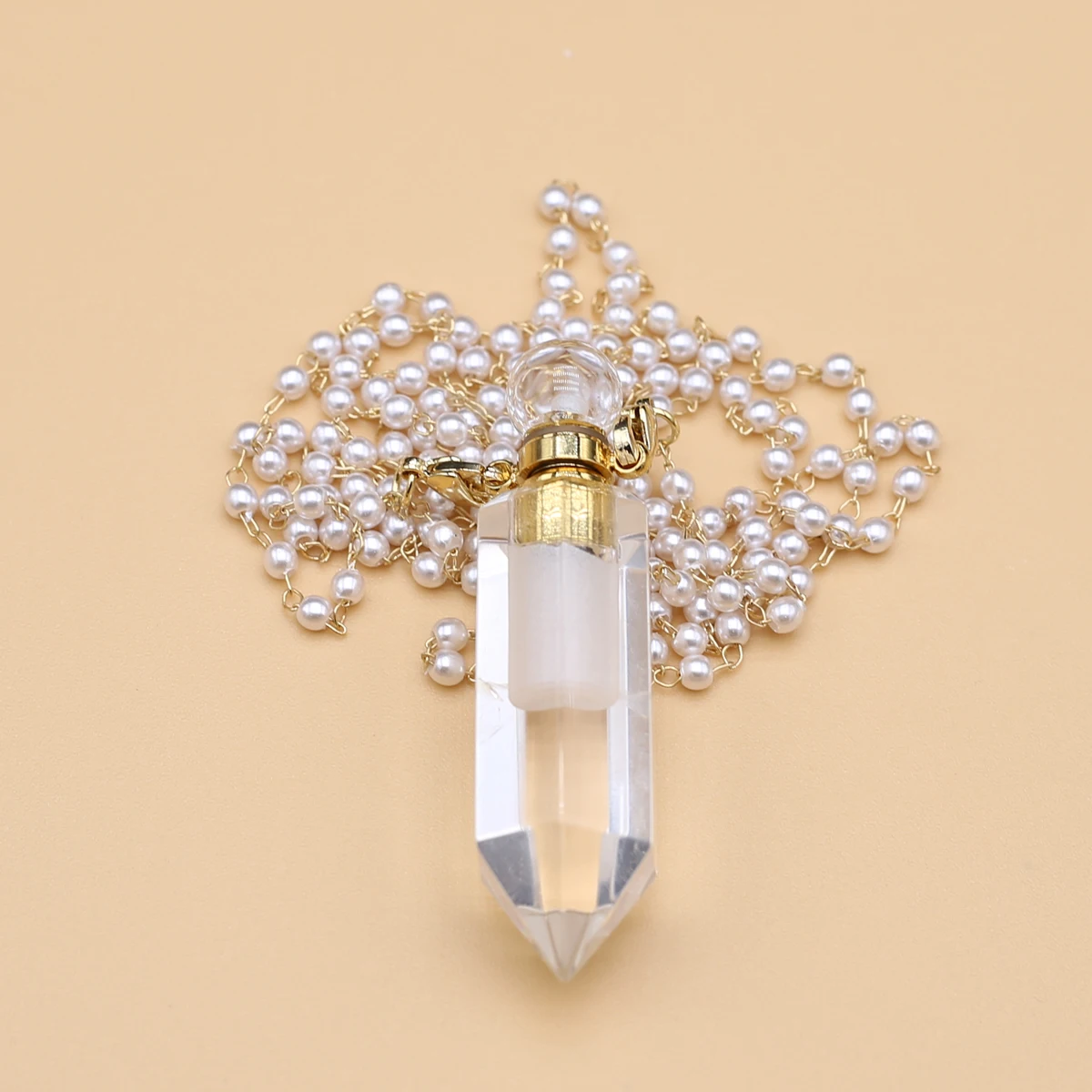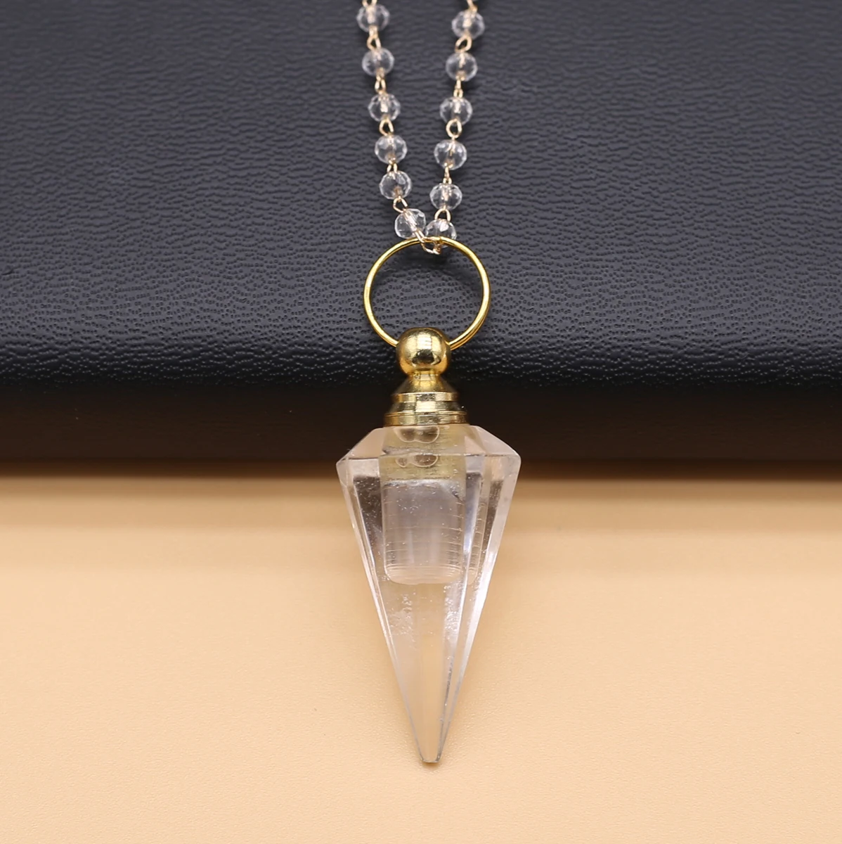 Pendentif Diffuseur d’Huiles Essentielles en Quartz Naturel Essential Oil Diffuser Necklace in Natural Clear Quartz