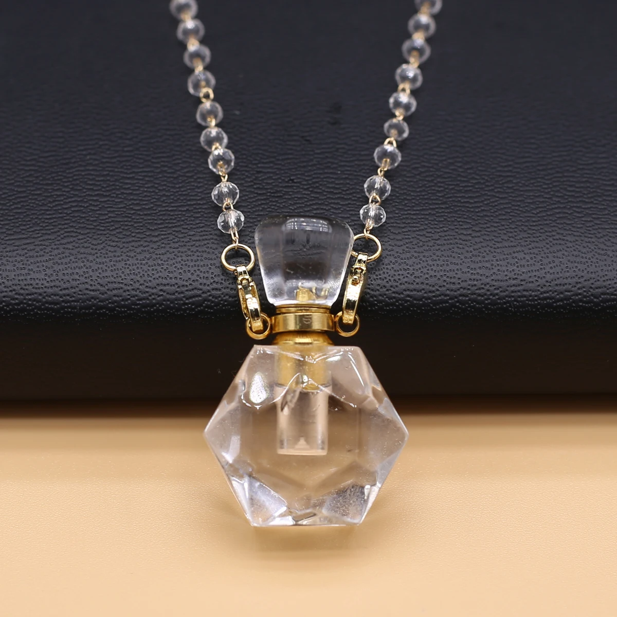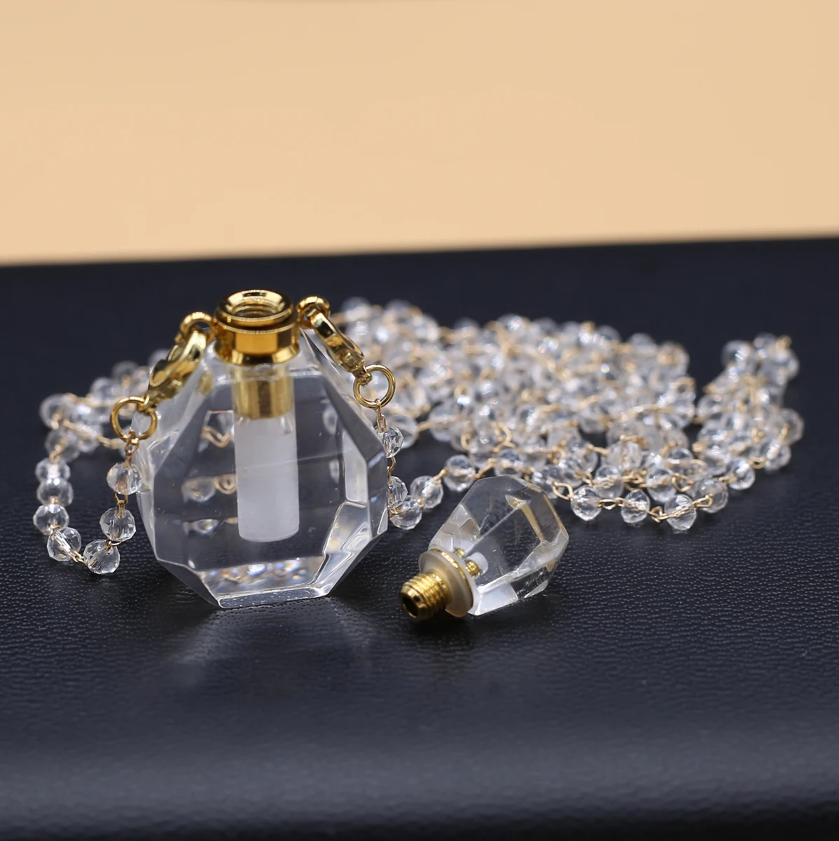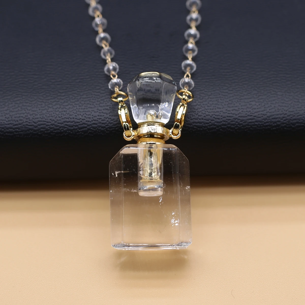 This unique necklace blends elegance and wellness. Made from natural clear quartz, it serves as both a stylish accessory and a personal essential oil diffuser.
